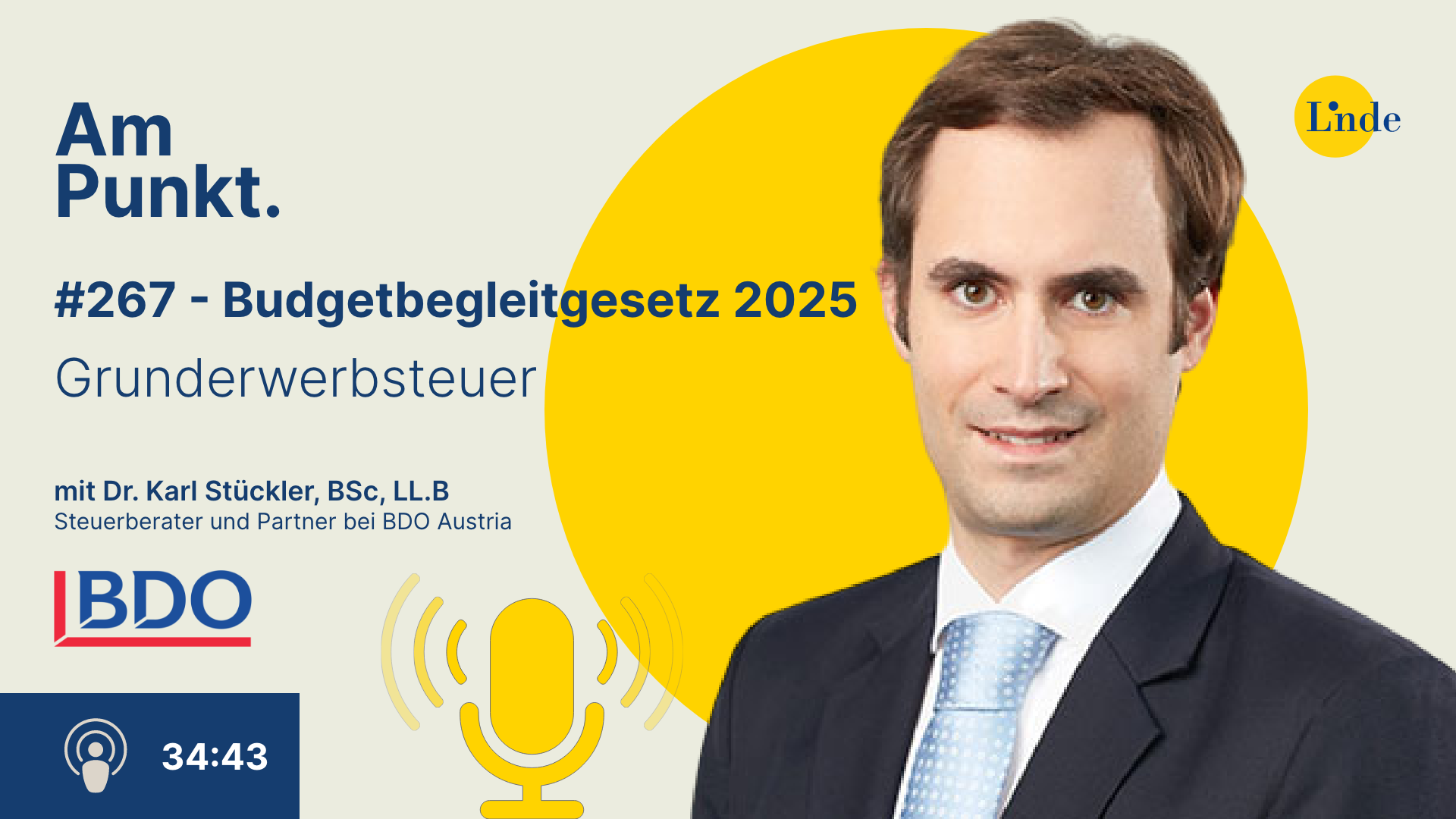 Das Budgetbegleitgesetz 2025 – Abgabenrecht ist am 1.7.2025 in Kraft getreten und normiert wesentliche Änderungen im Bereich der Grunderwerbsteuer. Dr. Karl Stückler, BDO, und Claudia Hahnekamp-Propst vom Linde Verlag gehen den Änderungen auf den Grund und erläutern, was es dabei zu beachten gilt.